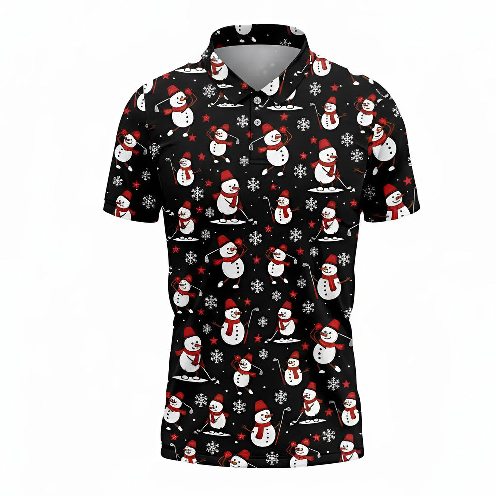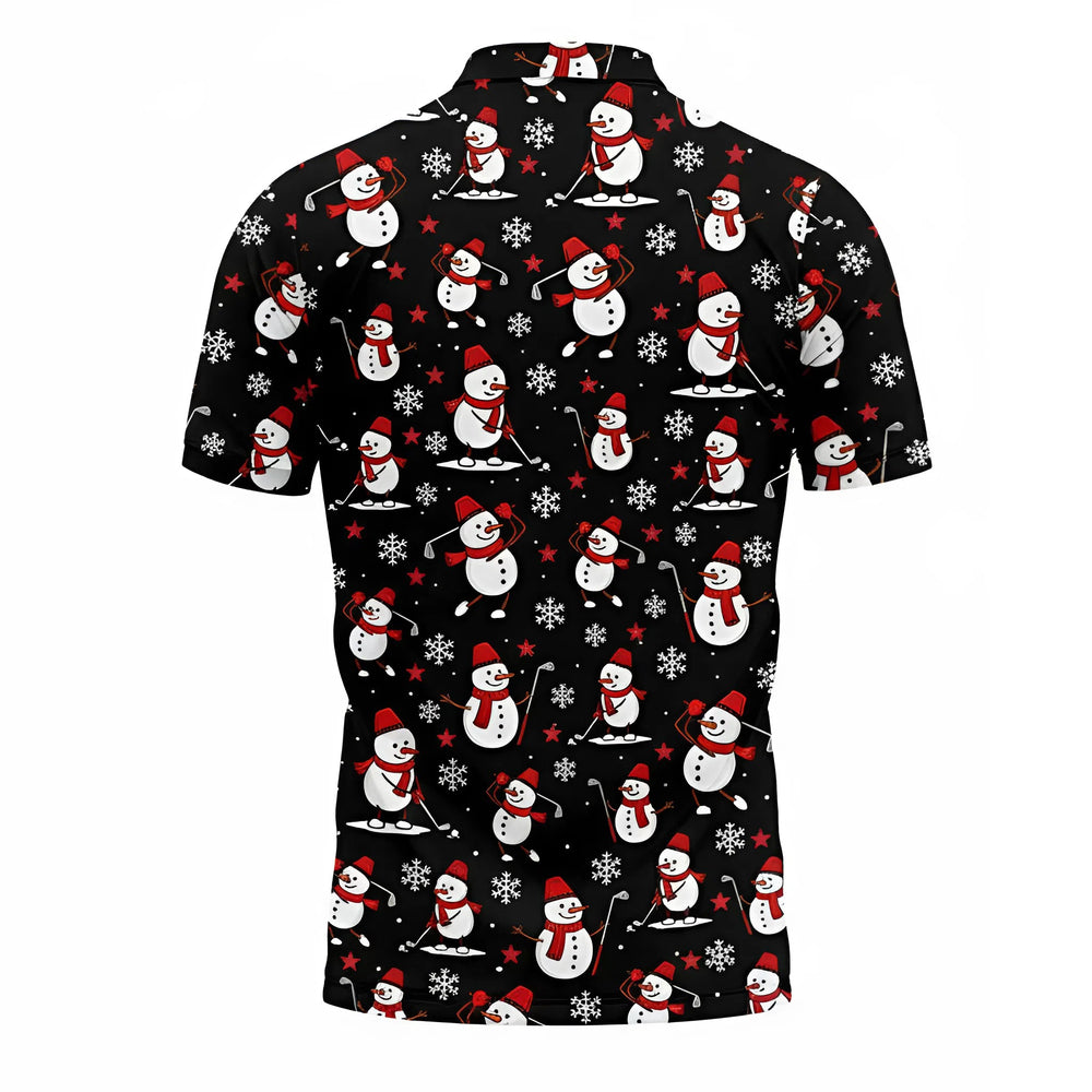 Christmas Golf Polo Shirt 3D Print – Funny Black Snowman Holiday Design for Men