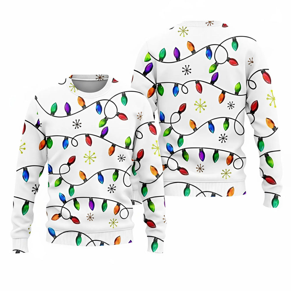 Christmas Lights Sweatshirt 3D All-Over Print Snowflakes Multi-Color Golf Shirt for Men
