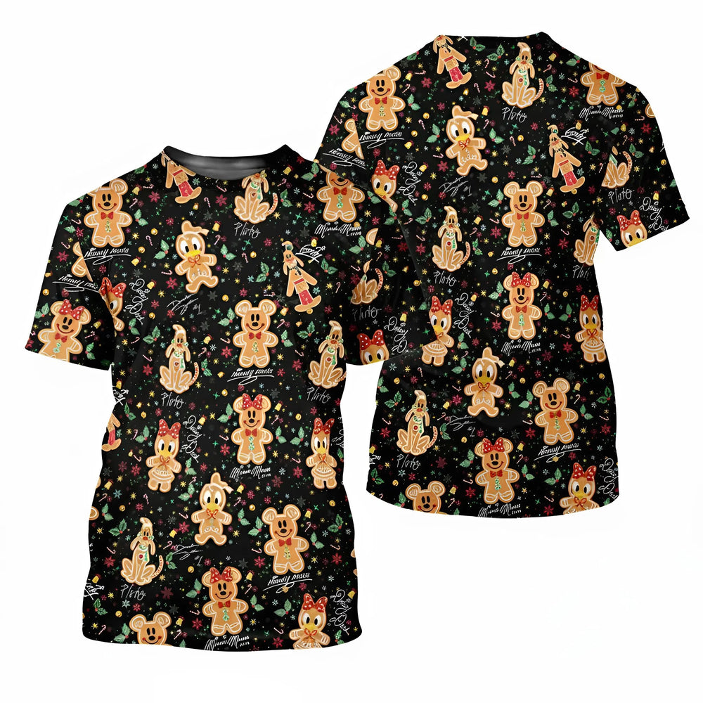 Cute Gingerbread Christmas Golf T-Shirt – Classic Cartoon Black Tee for Men