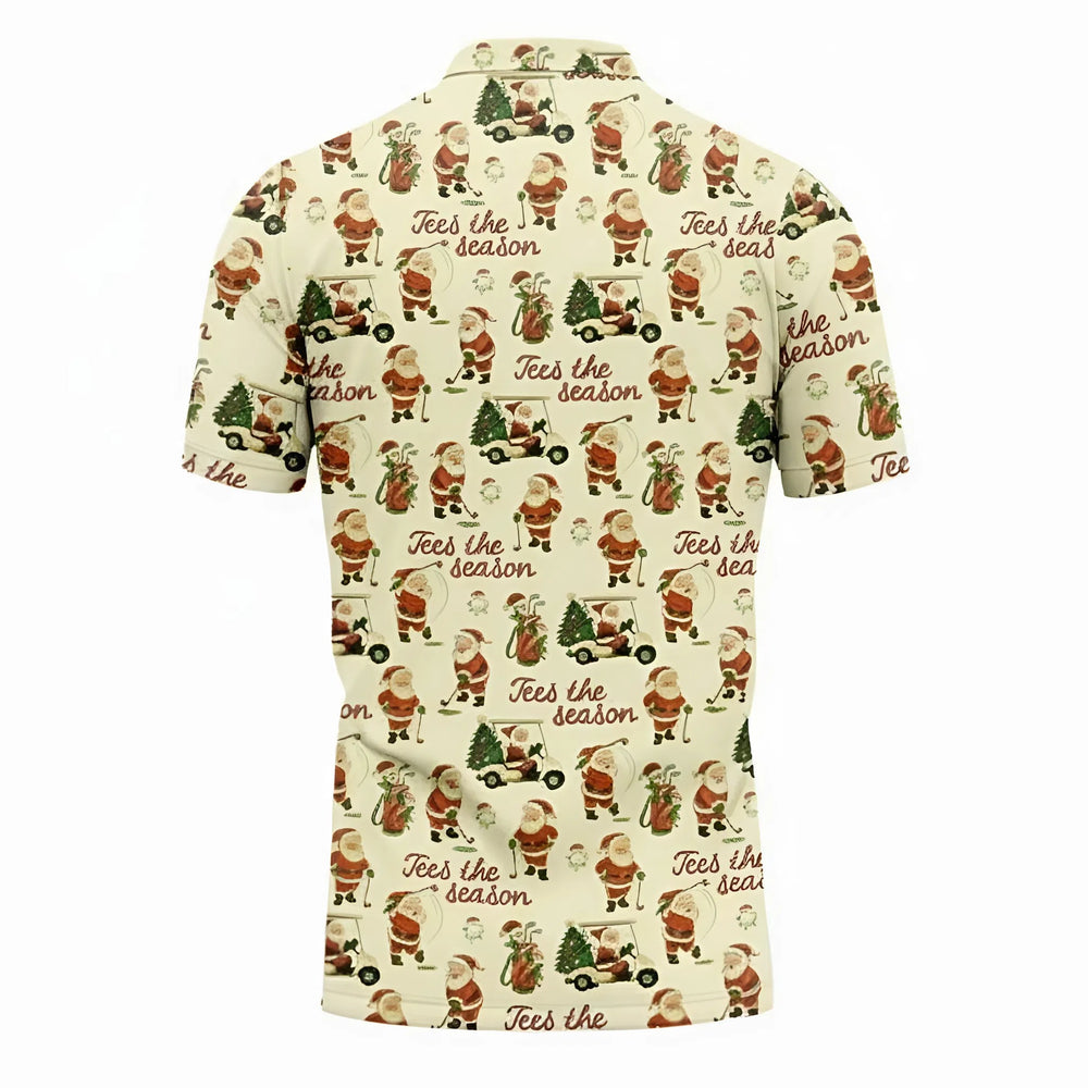 Mens Christmas Golf Polo Shirt 3D Print Funny Santa Golf Pattern Tees The Season Men