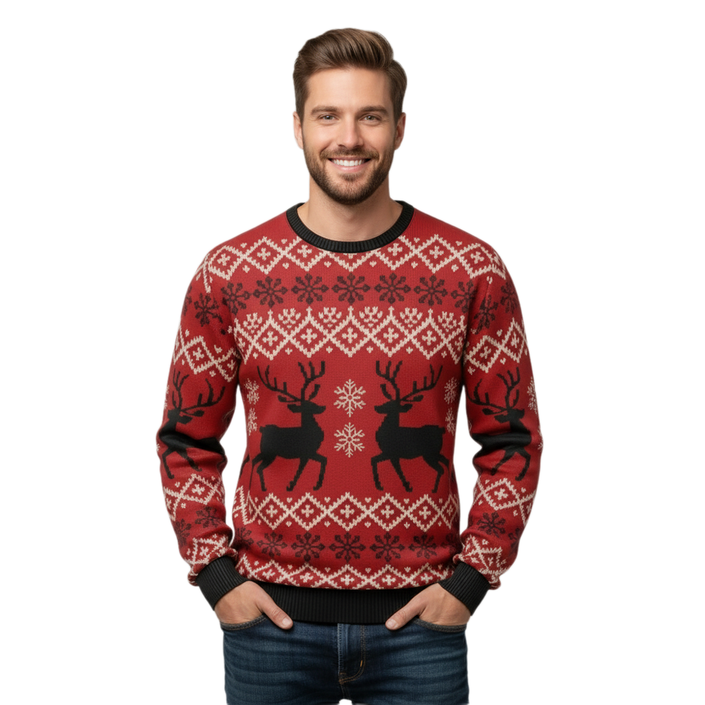 Mens Ugly Christmas Sweater Reindeer Cozy Thick Knit Holiday Gift Pullover
