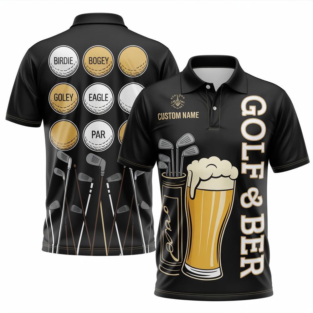 Personalized Mens Golf Polo Shirt Funny Beer Print Christmas Gift for Golfers Custom Name