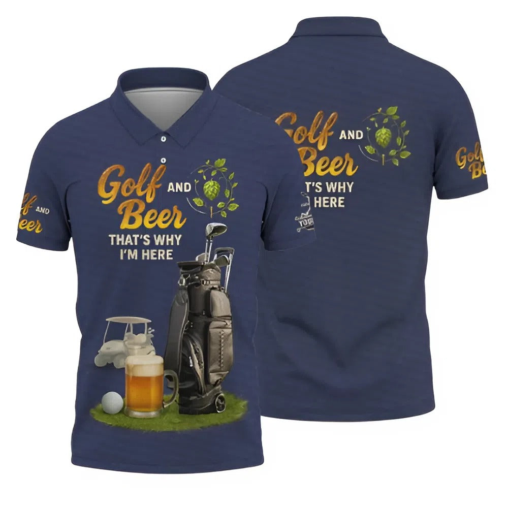 Personalized Men's Golf Polo Shirt Golf And Beer That's Why I'm Here Funny Hops Theme Custom Name