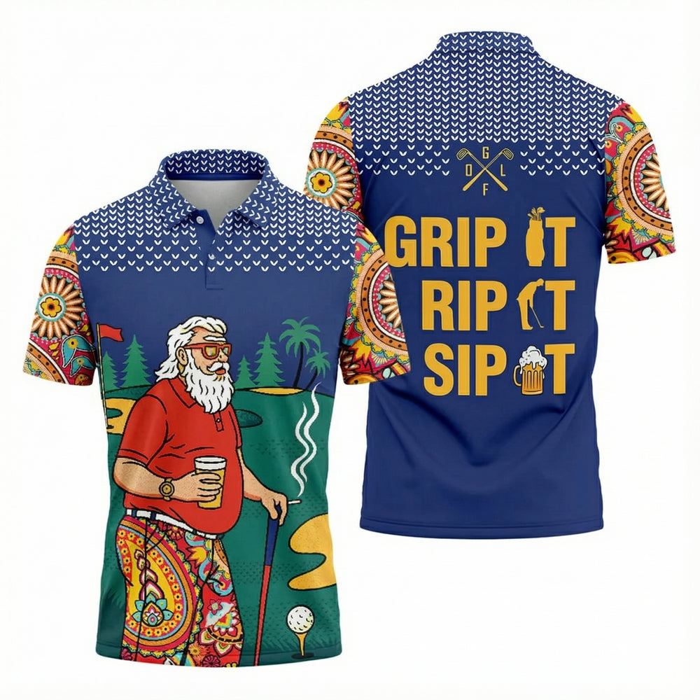 Personalized Men's Golf Polo Shirt Grip It Rip It Sip It Funny Drinking Quote Custom Name
