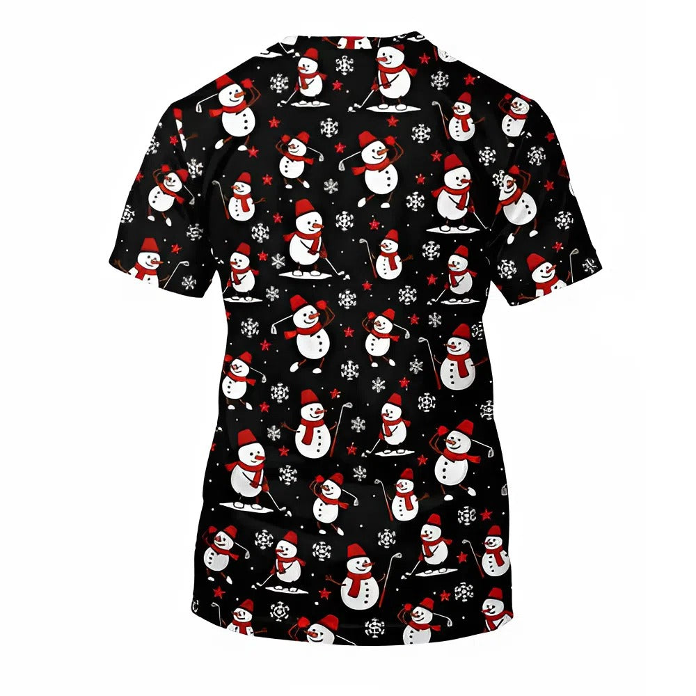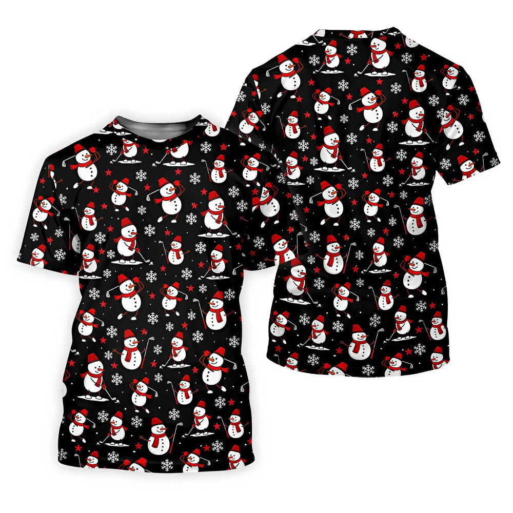 Personalized Men's Golf T-Shirt Snowman Playing Golf Pattern Ugly Christmas Sweater Style Custom Name