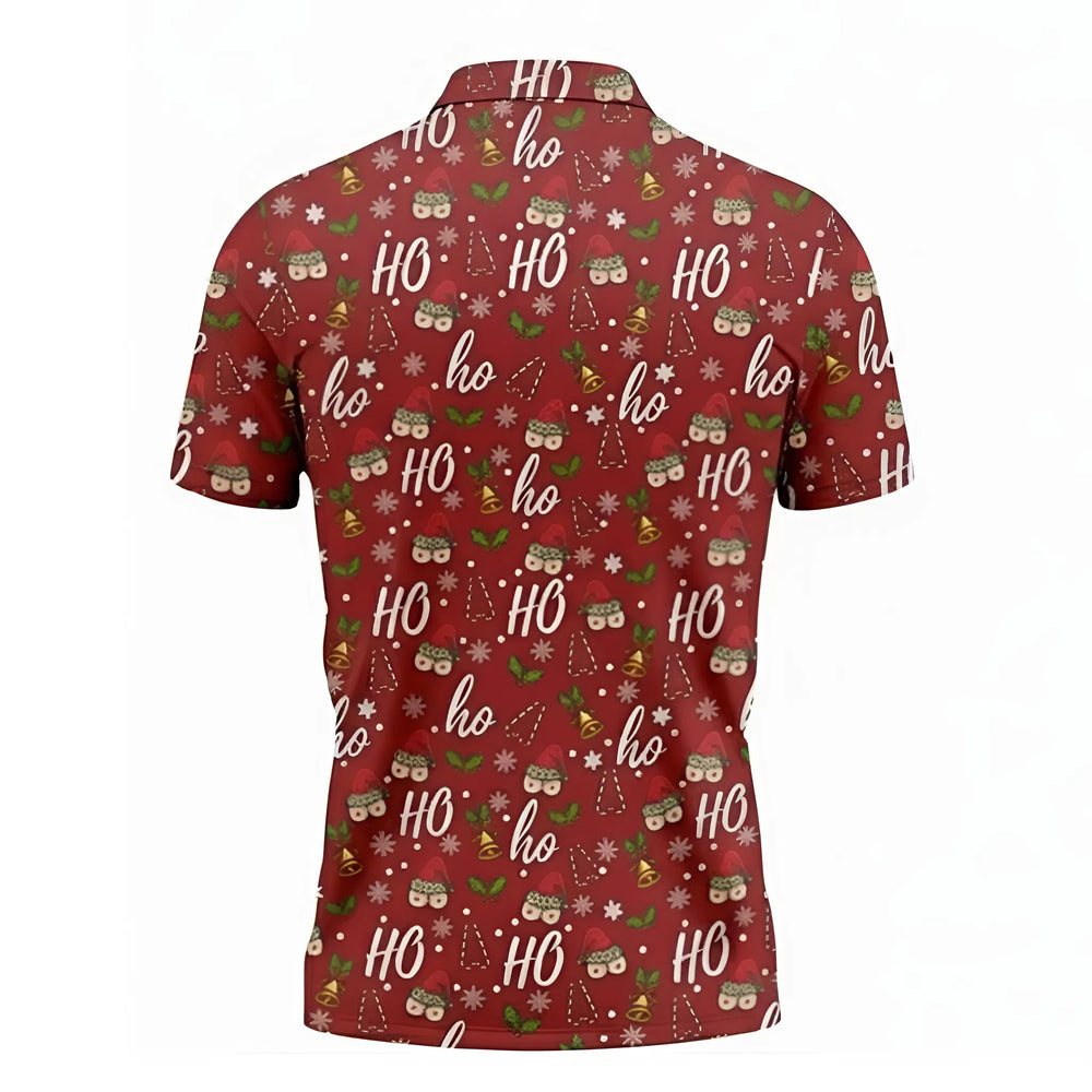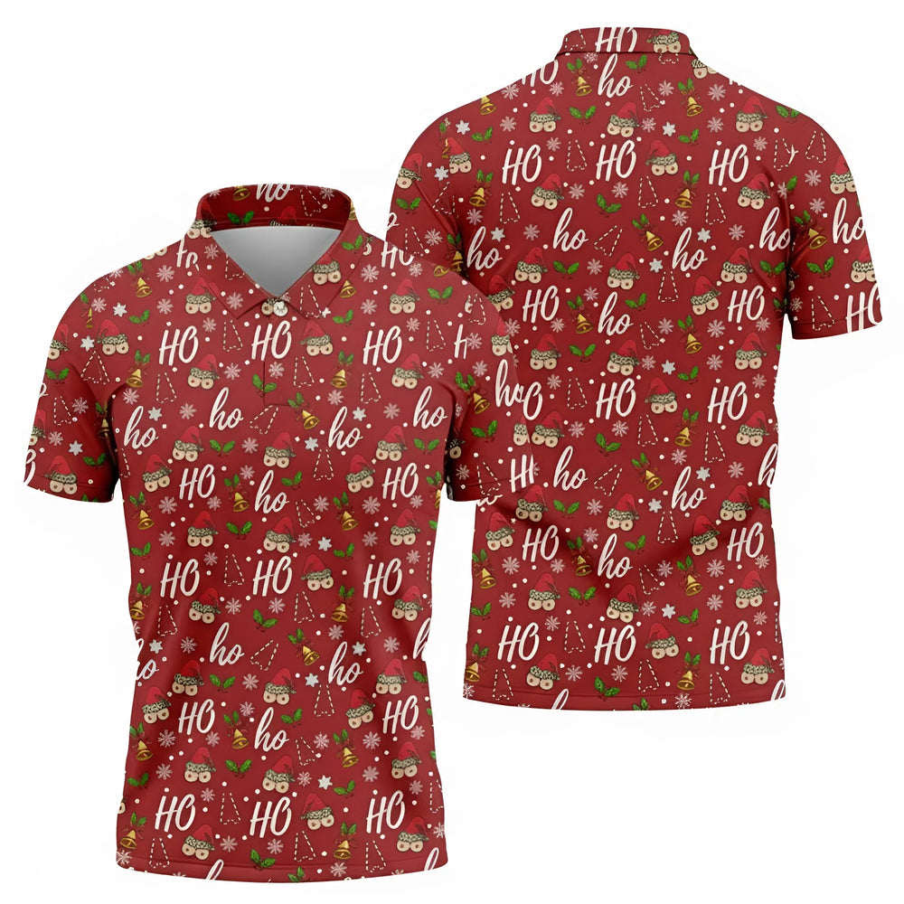 Red Ho Ho Ho Gnome Christmas Polo for Men – Funny Santa Holiday Golf Shirt