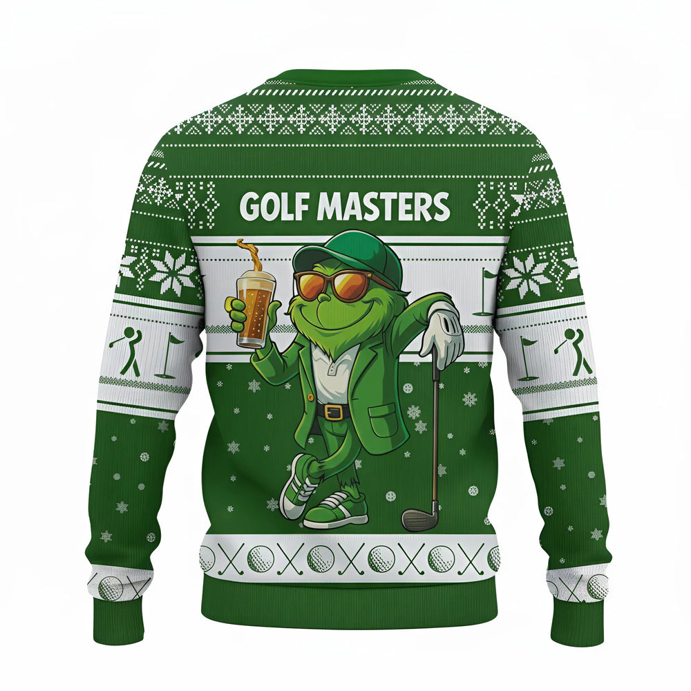 Ugly Christmas Sweater Funny Green Monster Golf Masters Beer 3D All Over Print Sweatshirt For Men Golfer