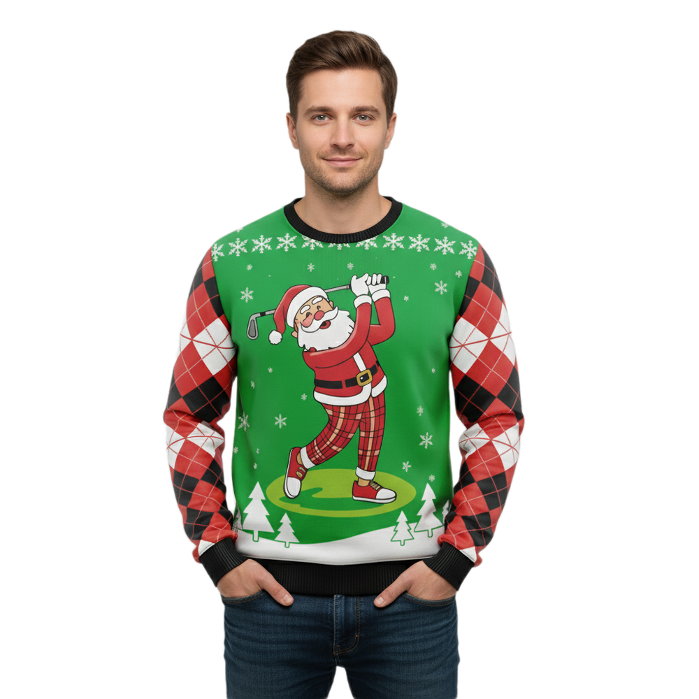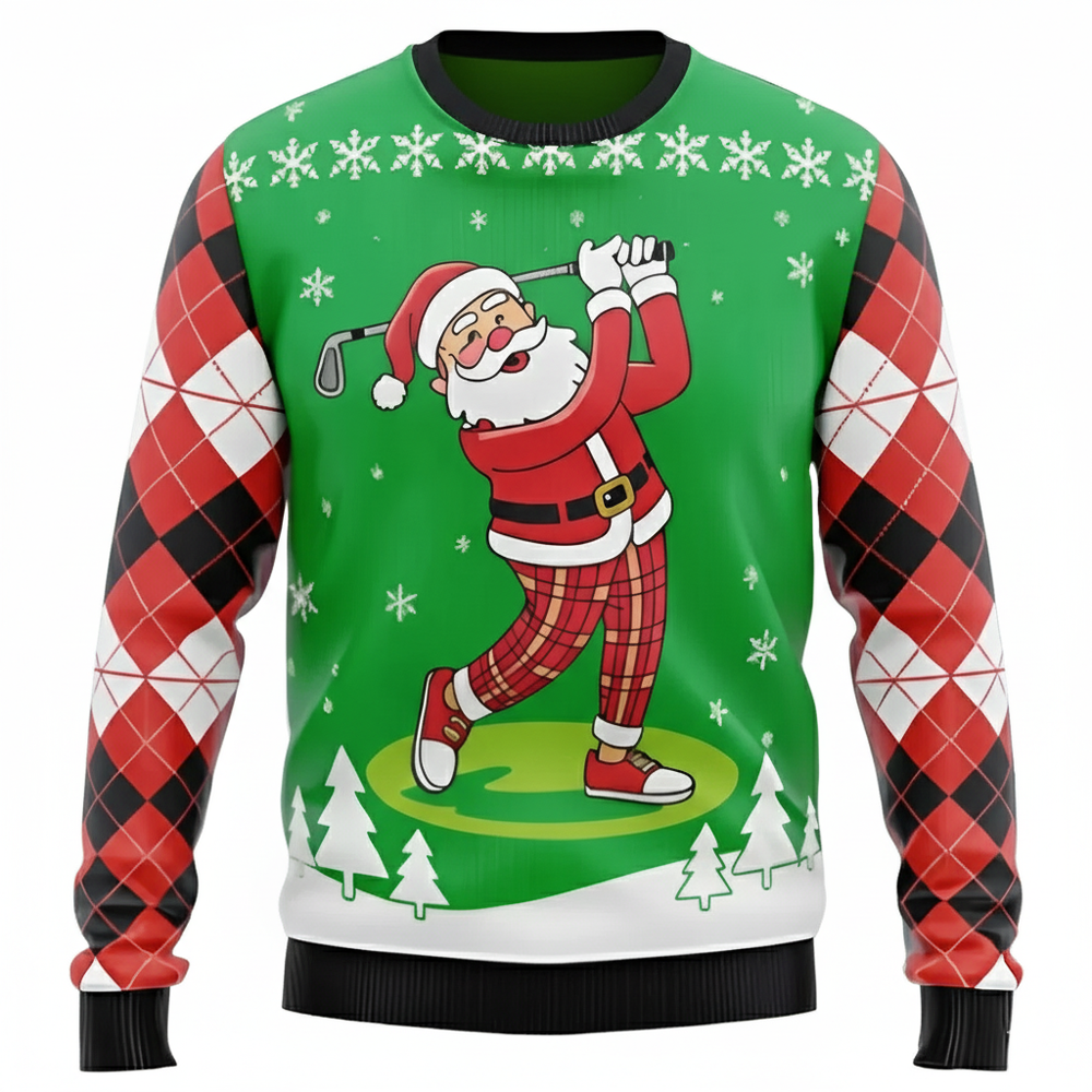 Ugly Christmas Sweater Santa Golf Party Argyle Holiday Pullover for Men