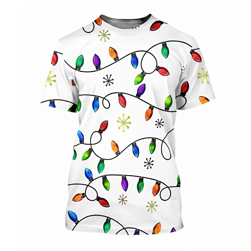 Ugly Christmas T-Shirt 3D Flashing Lights Festive Holiday Graphic Golf Shirt for Men