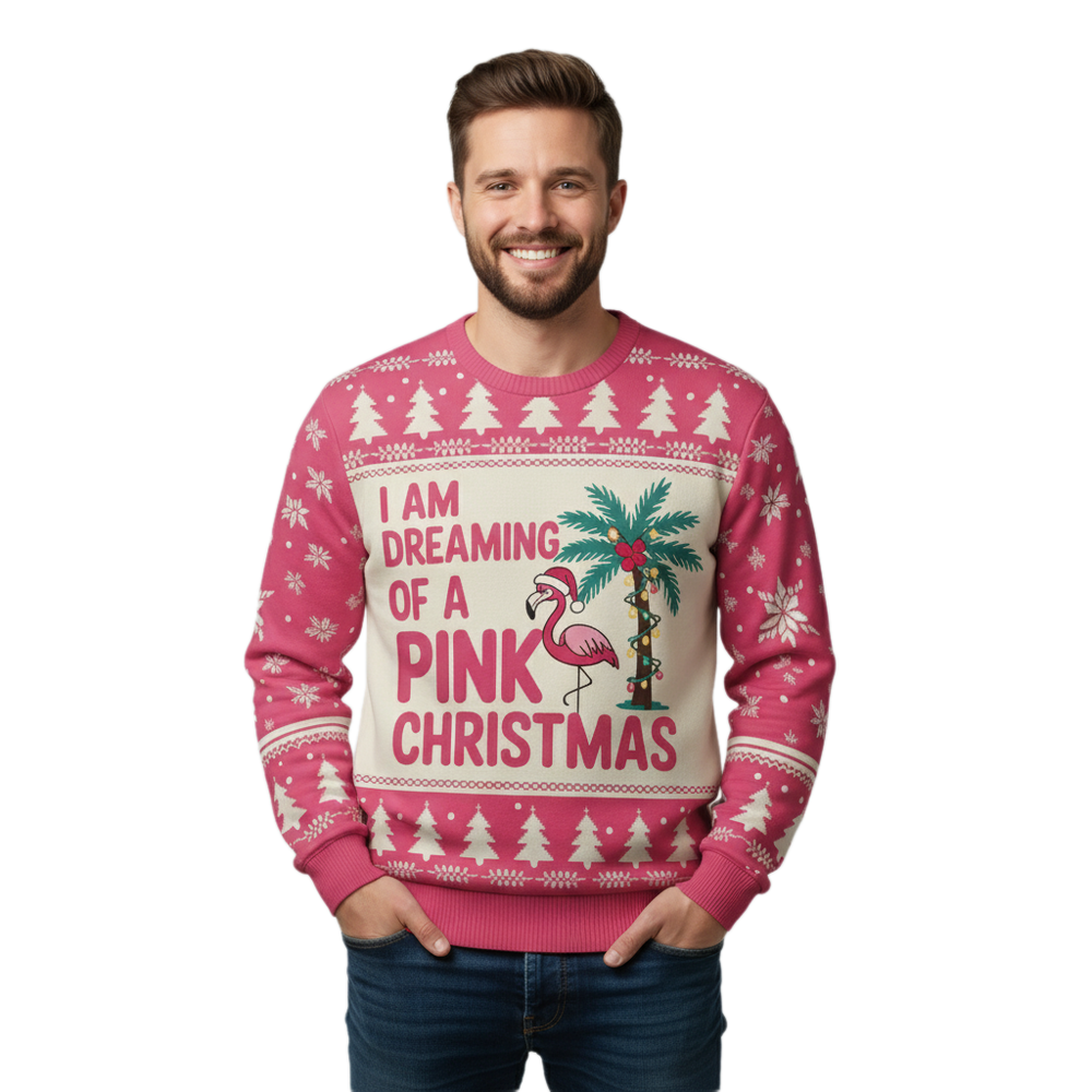 Unisex Christmas Sweater Tropical Flamingo Festive Holiday Jumper for Adults